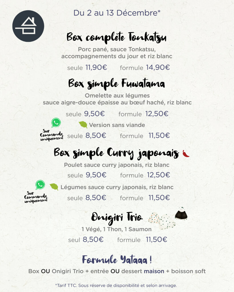 MANOYA vous propose de la VRAIE cuisine japonaise, faite maison et à emporter !